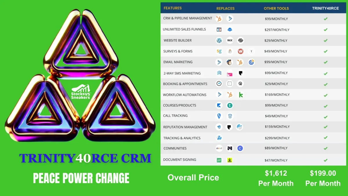 Subscribe to TRINITY40RCE and access a comprehensive sales and marketing platform that simplifies your business operations. For just $199/month, you’ll get: